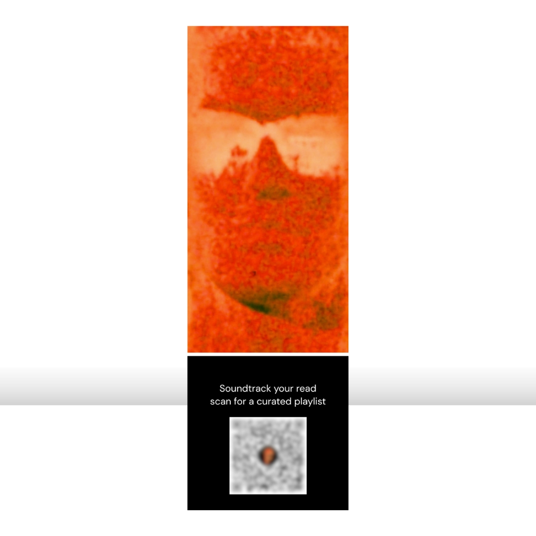 A limited edition bookmark featuring artwork from the novel Future X and a QR code linking to a custom playlist designed to accompany your reading experience.